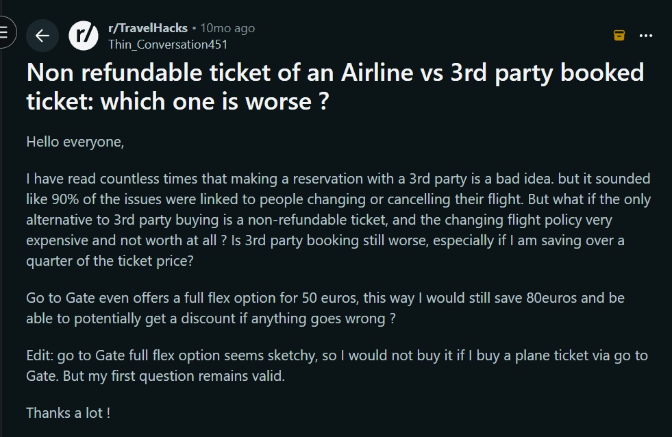“The issue with a third party is if something goes wrong, you deal with them instead of the airline.”